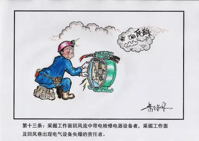 13、采掘工作面回風流中帶電檢修電氣設備者,采掘工作面及回風巷出現電氣設備失爆的責任者。