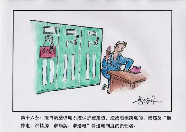 16、擅自調整供電系統保護整定值,造成越級跳電的,或違反“誰停電、誰掛牌、誰摘牌、誰送電”停送電制度的責任者。