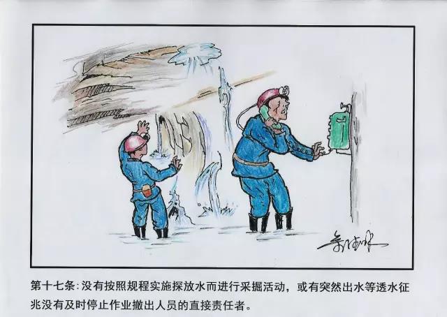 17、沒有按照規程實施探放水而進行采掘活動,或突然出水等透水征兆沒有及時停止作業撤出人員的直接責任者。