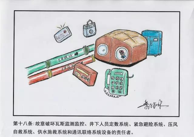 18、故意破壞瓦斯監測監控、井下人員定數系統、緊急避險系統、壓風自救系統、供水施救系統和通訊聯絡系統設備的責任者。