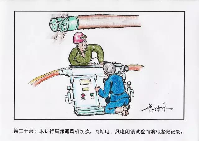 20、未進行局部通風機切換,瓦斯電、風電閉鎖試驗而填寫虛假記錄。