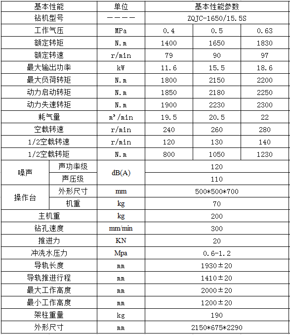 ZQJC-1650/15.5S氣動架柱式鉆機適用于探測地質構造煤層、探放水、抽放 瓦斯、煤體注水、卸放壓力孔、巷道貫通超前孔、巷道錨桿支護孔及其他特殊用途。