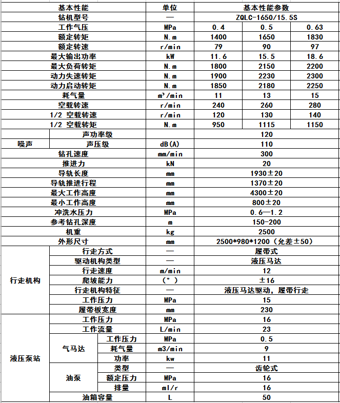 ZQJC-1650/15.5S氣動(dòng)履帶式鉆機(jī)